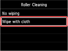 Επιλέξτε Σκουπίστε με πανί (Wipe with cloth) στην οθόνη Καθαρισμός κυλίνδρου (Roller Cleaning).