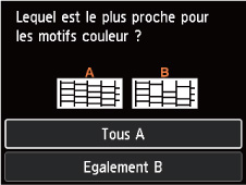 Sur l'écran de confirmation, sélectionnez le motif le plus proche du motif de vérification des buses imprimé.