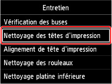 L'écran Nettoyage des têtes d'impression s'affiche.