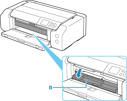 Când apare mesajul care vă solicită să încărcaţi Etichete imprimabile pentru unghii (Printable Nail Stickers), deschideţi ghidajul tăvii multifuncţionale (B).