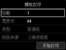 使用模板打印进行打印时,上端进纸盘是唯一可用的进纸位置。