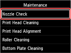 O padrão de verificação de ejetor será impresso e a tela de confirmação do padrão será exibida no LCD.
