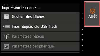 Si vous appuyez sur le bouton Arrêt pendant l'impression, un message de confirmation s'affiche. Pour annuler la tâche d'impression immédiatement, sélectionnez Oui.