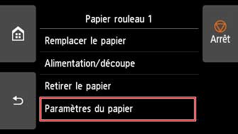 Touchez la zone d'affichage des paramètres papier sur l'écran Accueil de l'écran tactile.