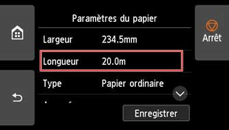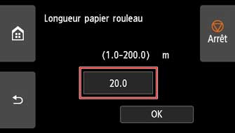 Touchez le pavé numérique qui s'affiche sur l'écran tactile, indiquez la longueur du rouleau, puis touchez OK.