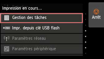 1. Touchez Gestion des tâches sur l'écran Accueil lors de l'impression.