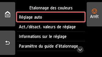 Une fois le papier confirmé et l'étalonnage des couleurs réalisé, la valeur de réglage de l'étalonnage est automatiquement configurée.