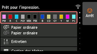 - Il est également possible de remplacer une cartouche d'encre en cours d'impression, en cas d'annulation des travaux d'impression ou lorsque le papier est avancé.