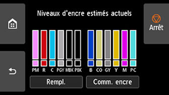 Sur l'écran tactile, vous pouvez vérifier la quantité d'encre restante dans la cartouche d'encre.