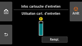 La cartouche d'entretien absorbe l'excès d'encre issu du nettoyage de la tête d'impression. Vous pouvez connaître la capacité restante de la cartouche d'entretien en consultant l'écran tactile.