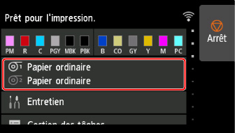Sur l'écran ACCUEIL, touchez la zone Informations papier.