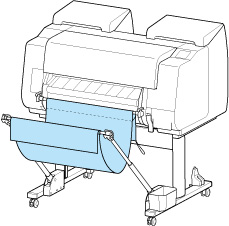 Il raccoglitore consente di raccogliere carta in rotolo con lunghezza fino a 1575 mm (62"). Per la stampa su carta in rotolo più lunga, procedere come descritto in "Stampa su carta di grande formato o facilmente danneggiabile (posizione 3)" o utilizzarlo con l'unità rotolo come dispositivo di avvolgimento.