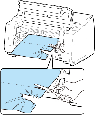 Se la carta in rotolo è molto arricciata o il bordo anteriore della carta in rotolo blocca il carrello, impostando il metodo di taglio della carta in rotolo su Taglio manuale (User cut) e il rilevamento del bordo anteriore su Non rilevare (Do not detect) è possibile impedire che la carta blocchi il carrello.
