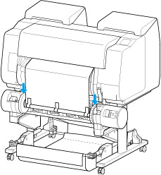 A seguinte operação assume que o suporte do rolo não está instalado na unidade em rolo e que o papel em rolo não está carregado no suporte do rolo. Se o suporte do rolo estiver instalado na unidade em rolo, primeiramente, remova o suporte do rolo da unidade em rolo e remova o papel em rolo carregado no suporte do rolo. (Consulte "Remoção do Rolo Inferior da Unidade em Rolo [Opção]".) (Consulte "Remoção de Rolos do Suporte do Rolo".)