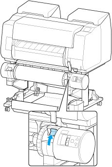 Altere o interruptor Bloqueio do suporte do rolo na unidade em rolo para o lado de liberação.
