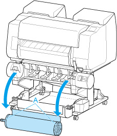 Segure o suporte do rolo por suas flanges (A) e remova da unidade em rolo.