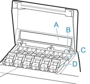 表示墨水盒舱盖打开时墨水盒的状态如下。