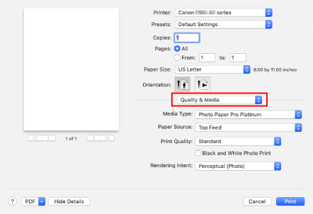 A Media Type (Hordozótípus) megadásakor válassza azt a papírtípust, ami a nyomtatóba is be van töltve.