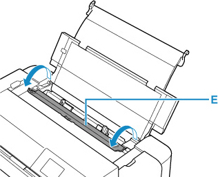 Csúsztassa a jobb oldali papírvezetőt (F) a két papírvezető kinyitásához, és töltse be a papírt a felső adagoló közepére A NYOMTATÁSI OLDALÁVAL ÖN FELÉ.
