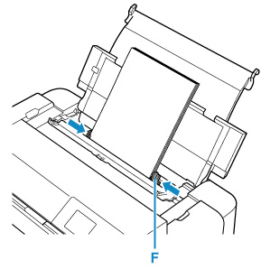 A jobb oldali papírvezető csúsztatásával (F) igazítsa a papírvezetőket a papírköteg két oldalához.