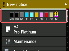 V območju A se pojavi simbol, če obstajajo informacije o preostalem črnilu.