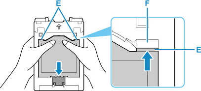 2. Natisljive nalepke za nohte z zaklepom potiskajte navzdol in jezička (E) na vrhu vstavite v reži (F) na večnamenskem pladnju.