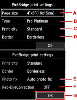 Ko določate nastavitve za PictBridge (Wi-Fi) iz tiskalnika, nastavite Velikost papirja (Paper size) na Privzeto (Default) v napravi, združljivi s standardom PictBridge (Wi-Fi).