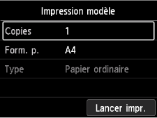 Impression modèle sur l'écran ACCUEIL et appuyez sur le bouton OK. -