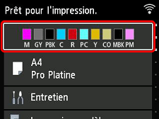 s'affiche au-dessus du niveau d'encre sur l'écran LCD et