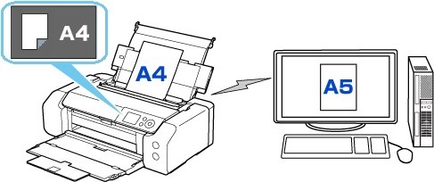 - Setări de hârtie specificate în driverul de imprimantă la imprimare: A5