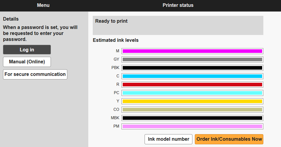 Atunci când terminaţi de verificat starea imprimantei şi de modificat setările imprimantei, selectaţi Log out.