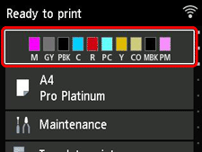 Selectaţi zona de afişare a stării cernelii de pe ecranul ACASĂ.