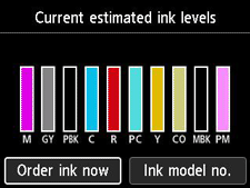 Selectaţi Nr. model cer. (Ink model no.) > Com. cerneală (Order ink now) pentru a afla de unde să achiziţionaţi cerneală.