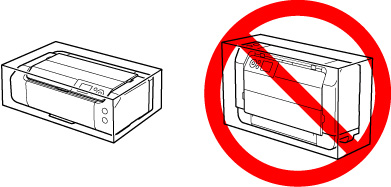 După ambalare, nu înclinaţi cutia care conţine imprimanta sau nu o întoarceţi pe o parte sau cu faţa în jos. Procedând astfel, este posibil să se scurgă cerneala în timpul transportului şi să se producă deteriorări la imprimantă.