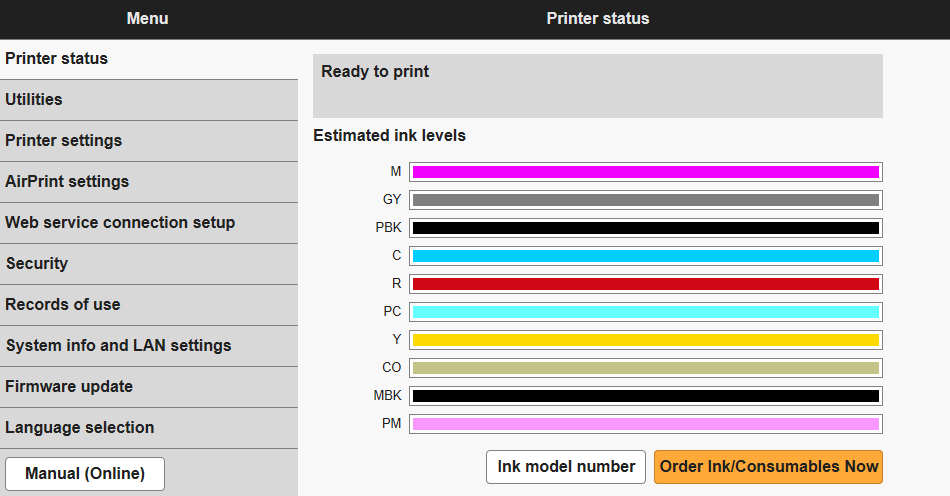 - Printer status