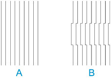 Dacă liniile verticale imprimate sunt deformate sau culorile nu sunt aliniate, executaţi operaţia Aliniere cap de imprimare (Print Head Alignment) şi reglaţi poziţia capului de imprimare.