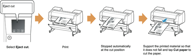 With Eject, printing does not resume after a series of jobs have been printed continuously until the roll is cut.