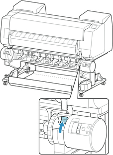 If using the roll unit as the feed device, depending on the basket position, the ejected roll paper's cut end enters the roll unit and may cause a paper jam or affect the print quality when set to "Borderless Printing" or "Trim Edge First" when loading the paper. In this case, change the basket position, and then print. (See "Example Basket Configurations.")