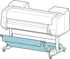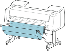 Rollenpapier mit maximal 1,575 m (62 Zoll) Länge kann im Korb gesammelt werden. Wenn auf längerem Rollenpapier gedruckt wird, verwenden Sie den Korb wie unter "Drucken auf großformatigem oder leicht zu beschädigendem Papier (Position 3)" beschrieben oder verwenden Sie ihn mit der Rolleneinheit als Aufnahmevorrichtung.