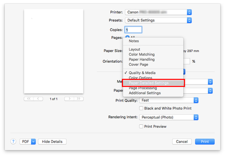 Wenn Sie Papier verwenden, auf dem die Tinte langsamer trocknet, kann Tinte auf der Papieroberfläche bei der Ausgabe verschmieren und das Papier verschmutzen. In diesem Fall können Sie das Problem möglicherweise verringern, indem Sie die Zeit einstellen, die zum Abtrocknen der Tinte nach dem Druckvorgang abgewartet werden soll.