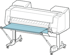 Les rouleaux mesurant jusqu'à 1575 mm (62 pouces) peuvent être collectés dans le panier. En cas d'impression sur un rouleau plus long, utiliser comme indiqué dans « Impression en grand format ou utilisation de papier fragile (Position 3) » ou avec l'unité de rouleau comme dispositif de tension.
