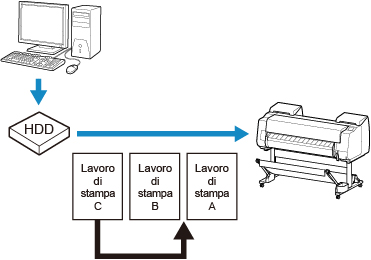 È possibile dare priorità ad altri lavori stampando per primi i lavori in fase di ricezione per l'elaborazione.