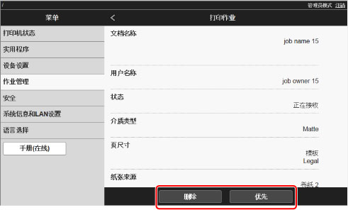 选择打印作业,然后选择删除或优先。