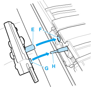 Installare la nuova lama di taglio allineando E a F e G a H.