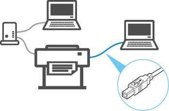 Você pode conectar a impressora a um computador por USB mesmo quando a impressora já estiver conectada a outro por meio de uma LAN com fio.