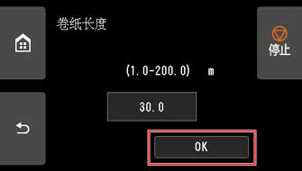 点击触摸屏上显示的键盘,输入卷纸长度,然后点击OK。