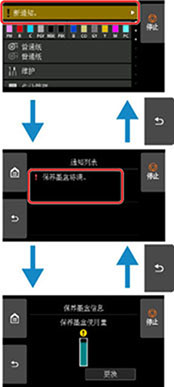 显示打印机状态、信息和其他信息。 出现信息时点击此项,可在列表屏幕上查看信息并跳转至显示详细信息和操作的屏幕。