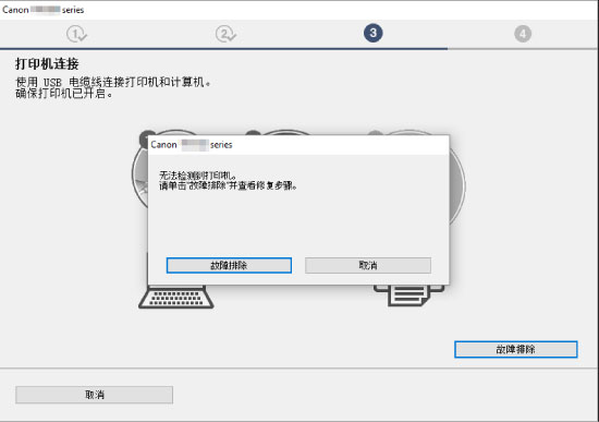 在打印机连接屏幕/连接电缆线屏幕无法继续操作