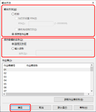 在保存数据的名称中,指定如何命名保存的打印作业。