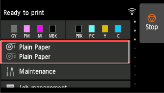 Puntee el área de visualización de la configuración del papel en la pantalla de inicio.